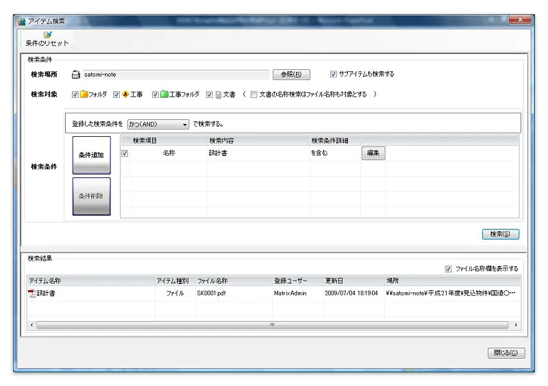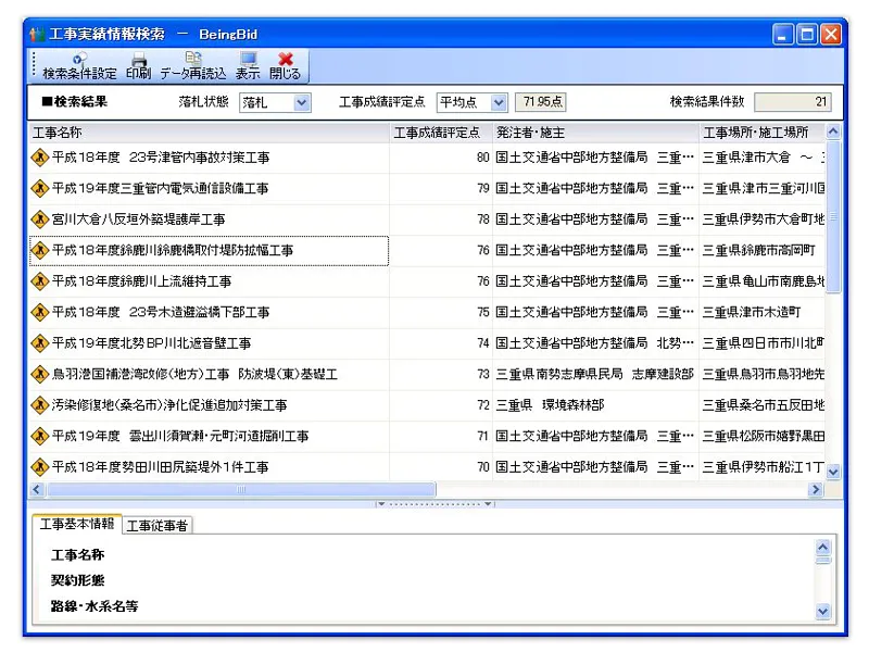 CORINSデータや工事成績評定点などの自社独自情報を自由に組合せた検索機能で、即座に最適な工事実績を導きだします。