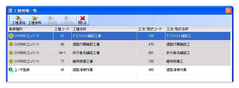 各工事に対する技術データとして、詳細な工種情報を追加できます。