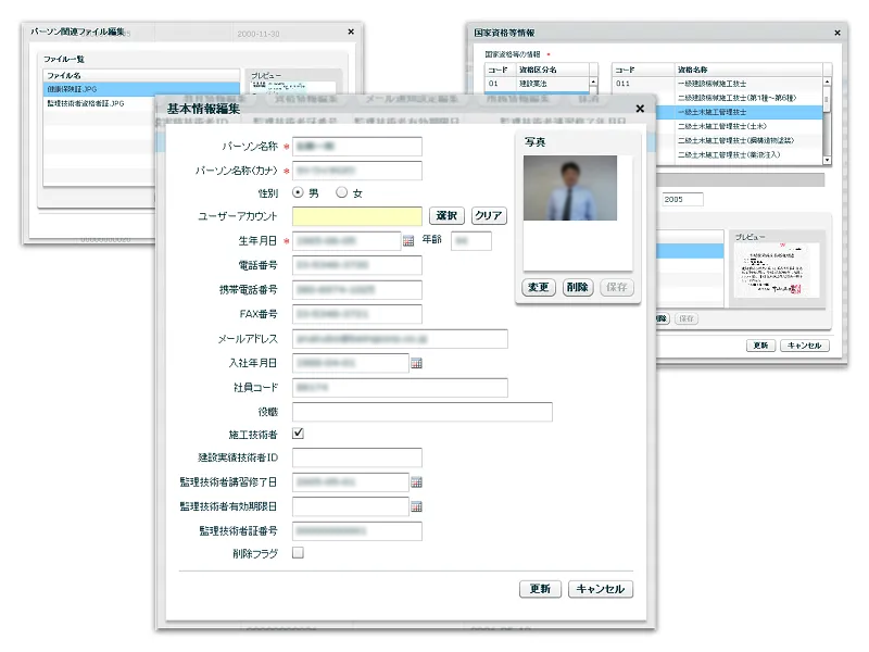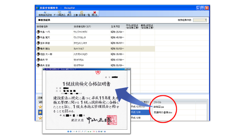 技術者の各種情報を管理。資格証イメージの管理も含め、入札時に必要な情報を一元管理できます。