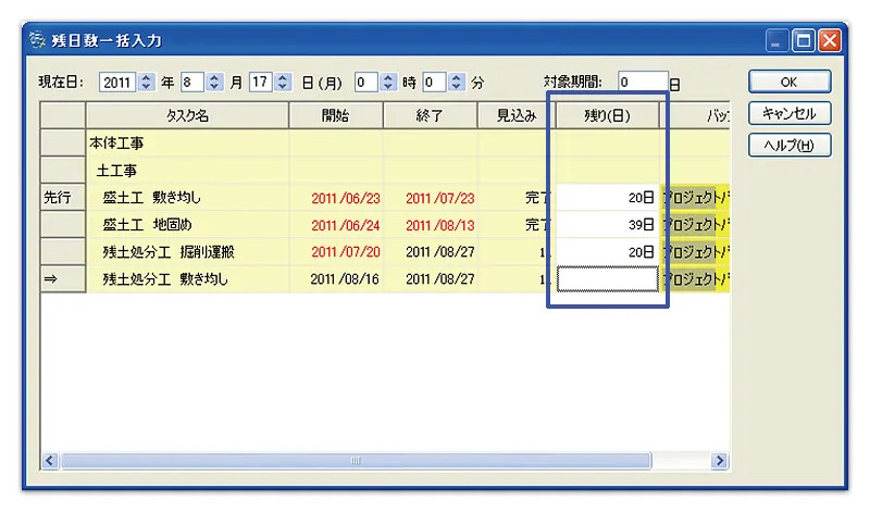工事には不確実性がつきものです。その対策としては、安全余裕を持つことが重要です。『BeingProject-CCPM』では、各タスクから取り除いた安全余裕を「バッファ」として集約します。バッファの残量を確認することで、進捗状況がひと目で把握できます。直感的に理解できるため、発注者との協議をはじめ、工事関係者間での活発なコミュニケーションを促し、工期の遵守に貢献します。
