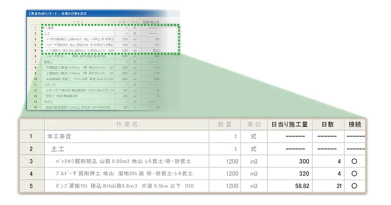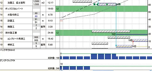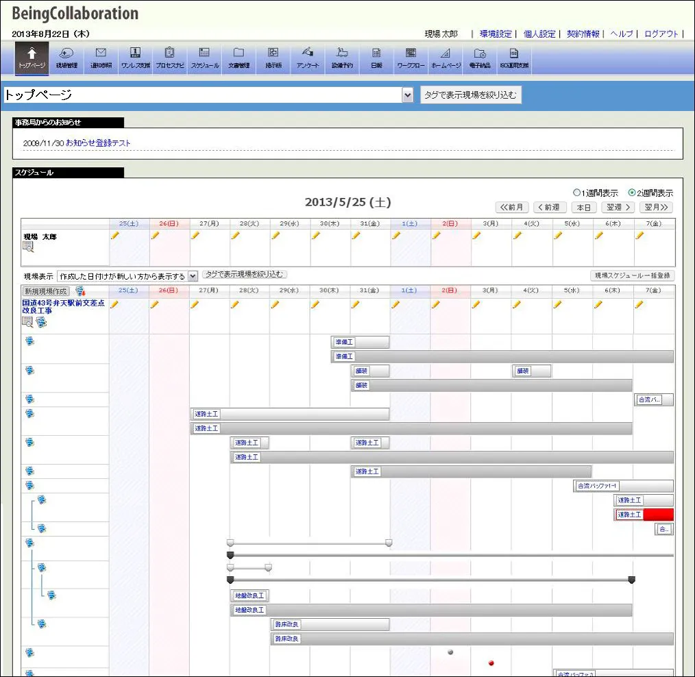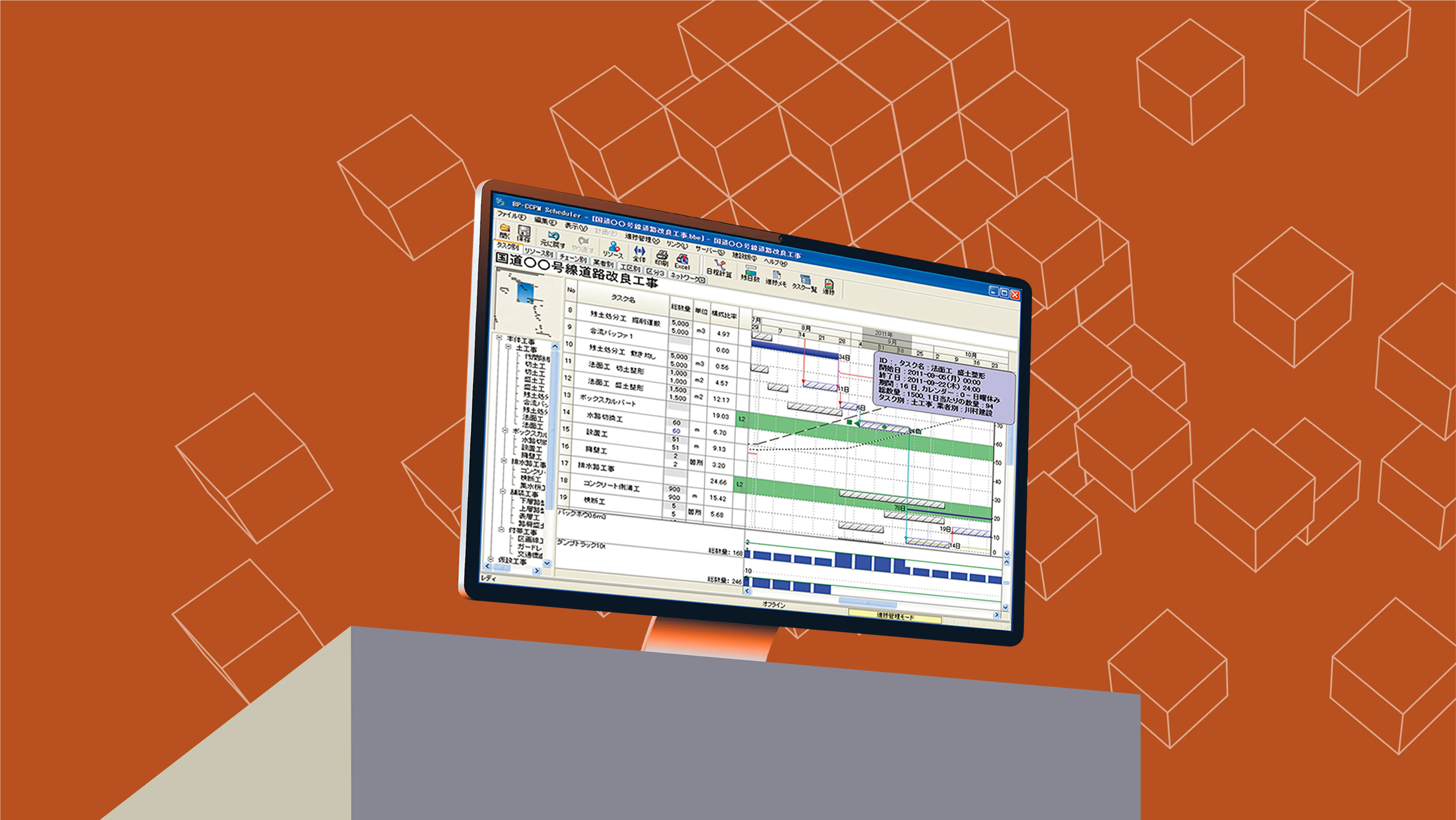 『Gaia』シリーズで作成した積算データを元に工程表を作成できたり、『BeingCollaboration』シリーズと連携してインターネットを介して工事関係者間で工程表を共有できるなど、工程表の作成から活用までをトータルにご支援します。