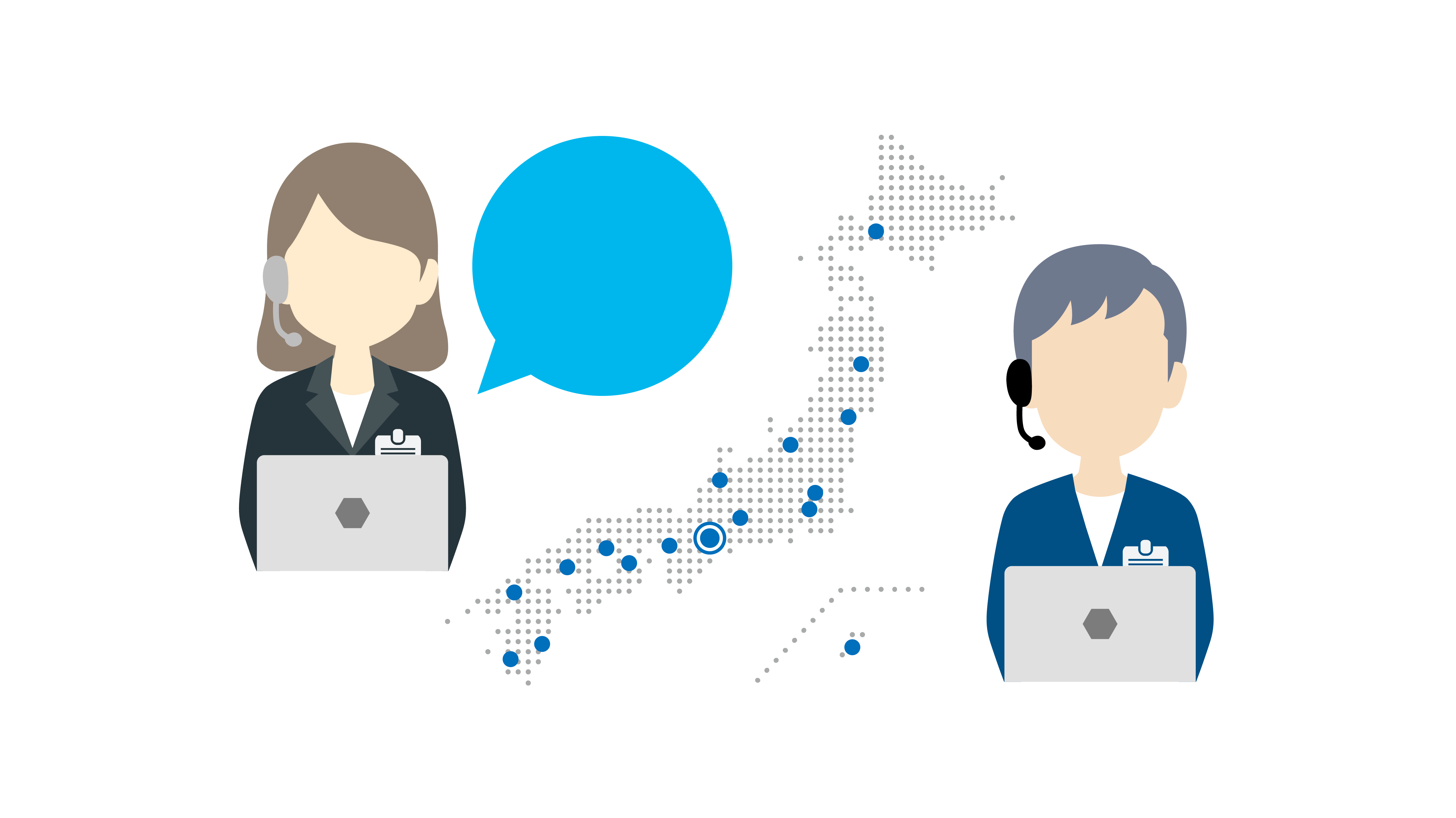 コールセンターに加え全国17カ所の営業拠点に配置された専門スタッフが、地域特性や業務ニーズに応じたきめ細やかなサポートをご提供します。