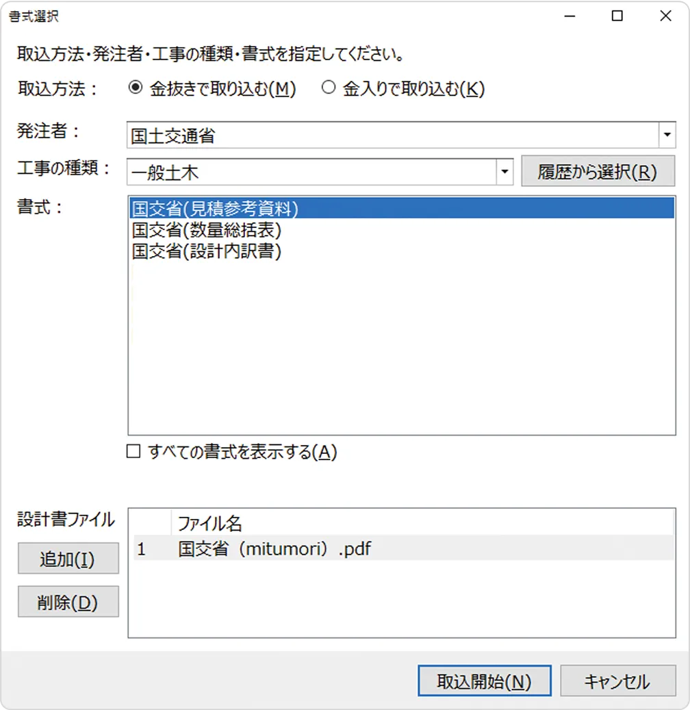 設計書に記載されている文字や積算条件などを読み取って、自動的に工種・条件など確定し、積算単価を計上する機能です。