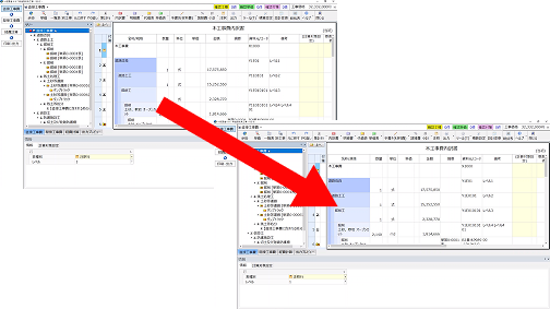 複数の工事を同時に開いて編集できるため、比較や参照がスムーズに行えます。さらに、過去の工事データから必要な箇所を簡単にコピー&ペーストでき、類似案件の積算時間を大幅に短縮。Excel感覚の操作性で、初心者から経験豊富な積算担当者まで直感的に使えます。