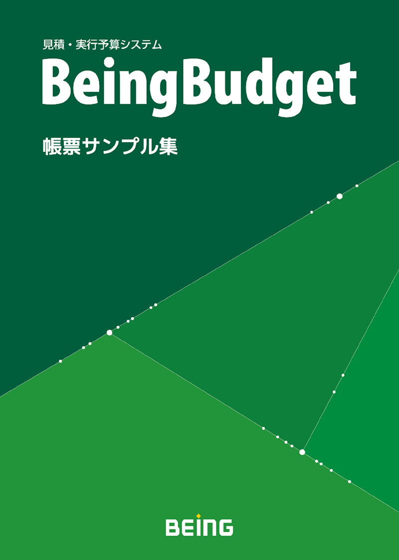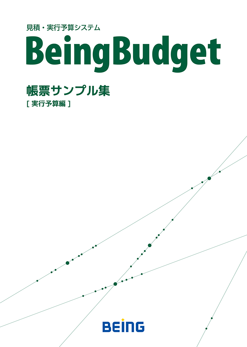 見積・実行予算システム『BeingBudget』の「帳票サンプル集【原価管理編】」です。実行予算の作成から施工中の原価管理まで、現場で利用する帳票サンプルを幅広く収録しています。