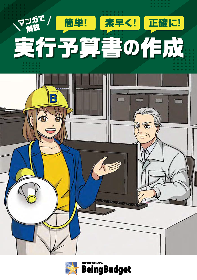 建設業向けの見積・実行予算システム『BeingBudget』を紹介するマンガ形式のパンフレットです。